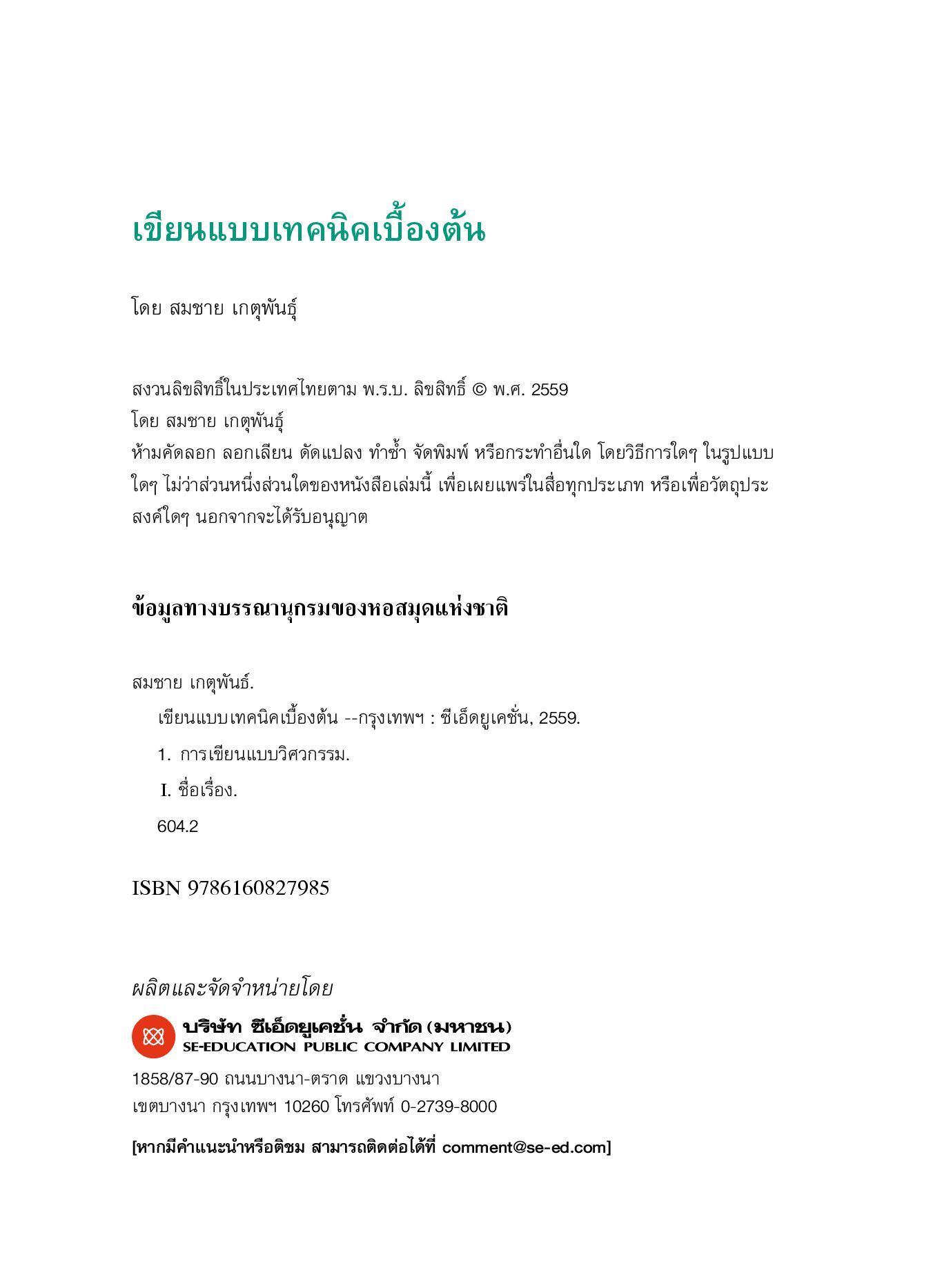 "เขียนแบบเทคนิคเบื้องต้น" เล่มนี้ มีเนื้อหาตรงตามหลักสูตรประกาศนียบัตรวิชาชีพ พุทธศักราช 2556 ของสำนักงานคณะกรรมการอาชีวศึกษา กระทรวงศึกษาธิการ เริ่มตั้งแต่ทำความรู้จักกับเครื่องมือและอุปกรณ์ที่ใช้ในงานเขียนแบบ ลักษณะของเส้น ตัวเลข และตัวอักษร หลักการ่อานและการเขียนภาพสามมิติ การฉายภาพ การเขียนภาพฉาย การเขียนภาพสามมิติ การสเกตช์ภาพฉาย การอ่านและเขียนภาพฉาย การสร้างรูปทรงเลขาคณิต การเขียนวงรี การเขียนภาพสามมิติ การอ่านและเขียนภาพฉายของชิ้นงานทรงกระบอก การกำหนดขนาดในงานเขียนแบบตามมาตรฐาน การเขียนภาพตัดลักษณะต่าง ๆ มาตราส่วนและสัญลักษณ์เบื้องต้นที่ใช้งานเขียนแบบ ตลอดจนการเขียนภาพช่วยแบบงานเกลียวและการอ่านภาพประกอบ นำเสนอด้วยเนื้อหาโดยละเอียด พร้อมตัวอย่างหลากหลายเข้าใจง่าย พร้อมแบบทดสอบท้ายบทสำหรับทบทวนเนื้อหา