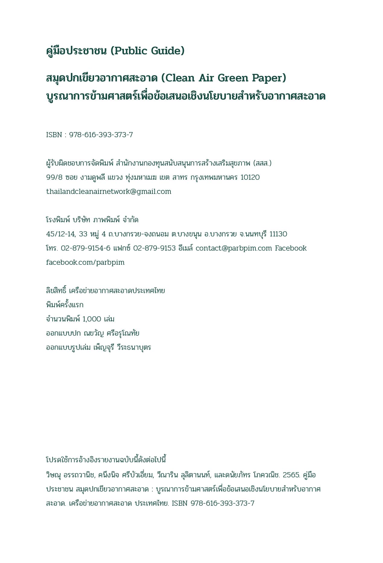 - สำนักพิมพ์ : Thailand Clean Air Network
