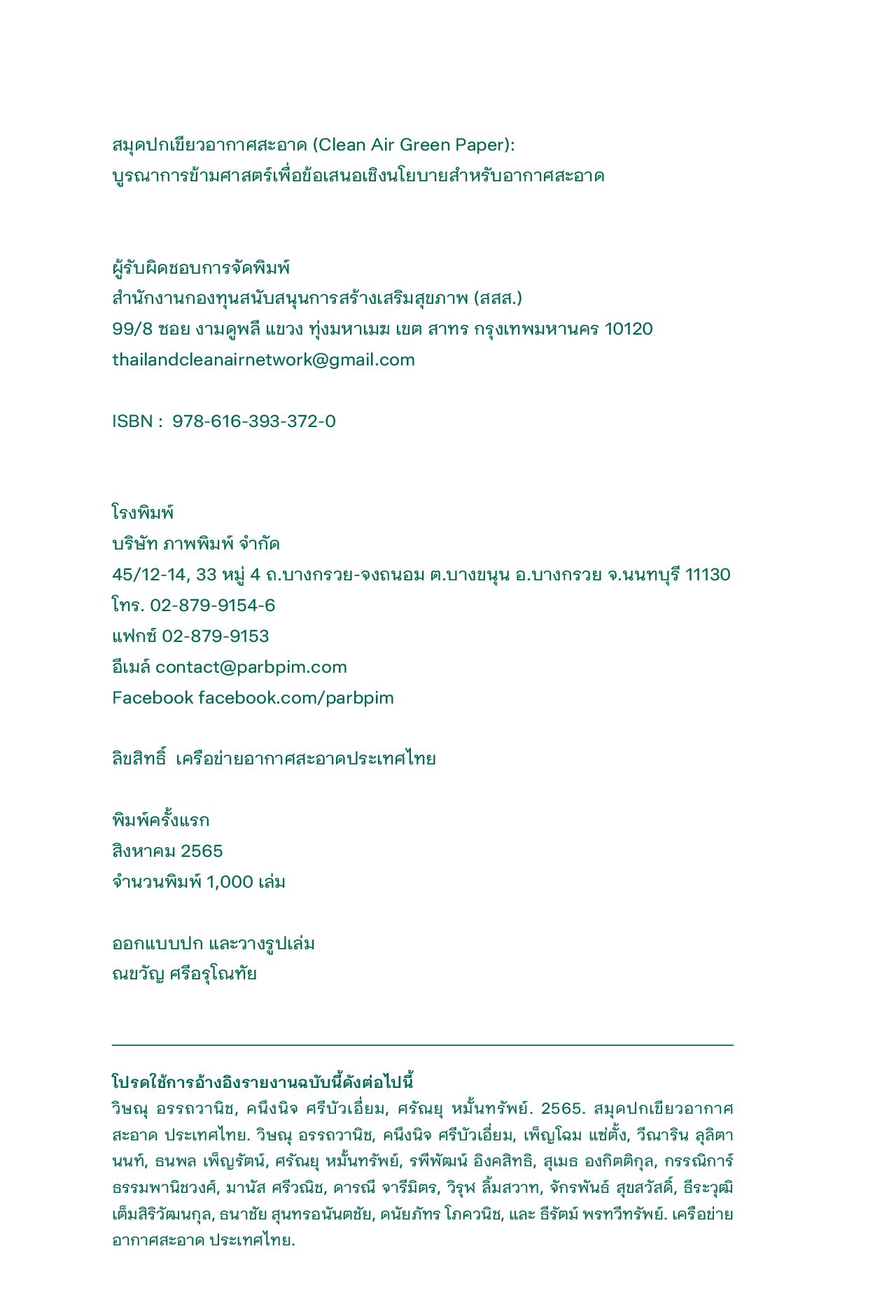 - สำนักพิมพ์ : Thailand Clean Air Network