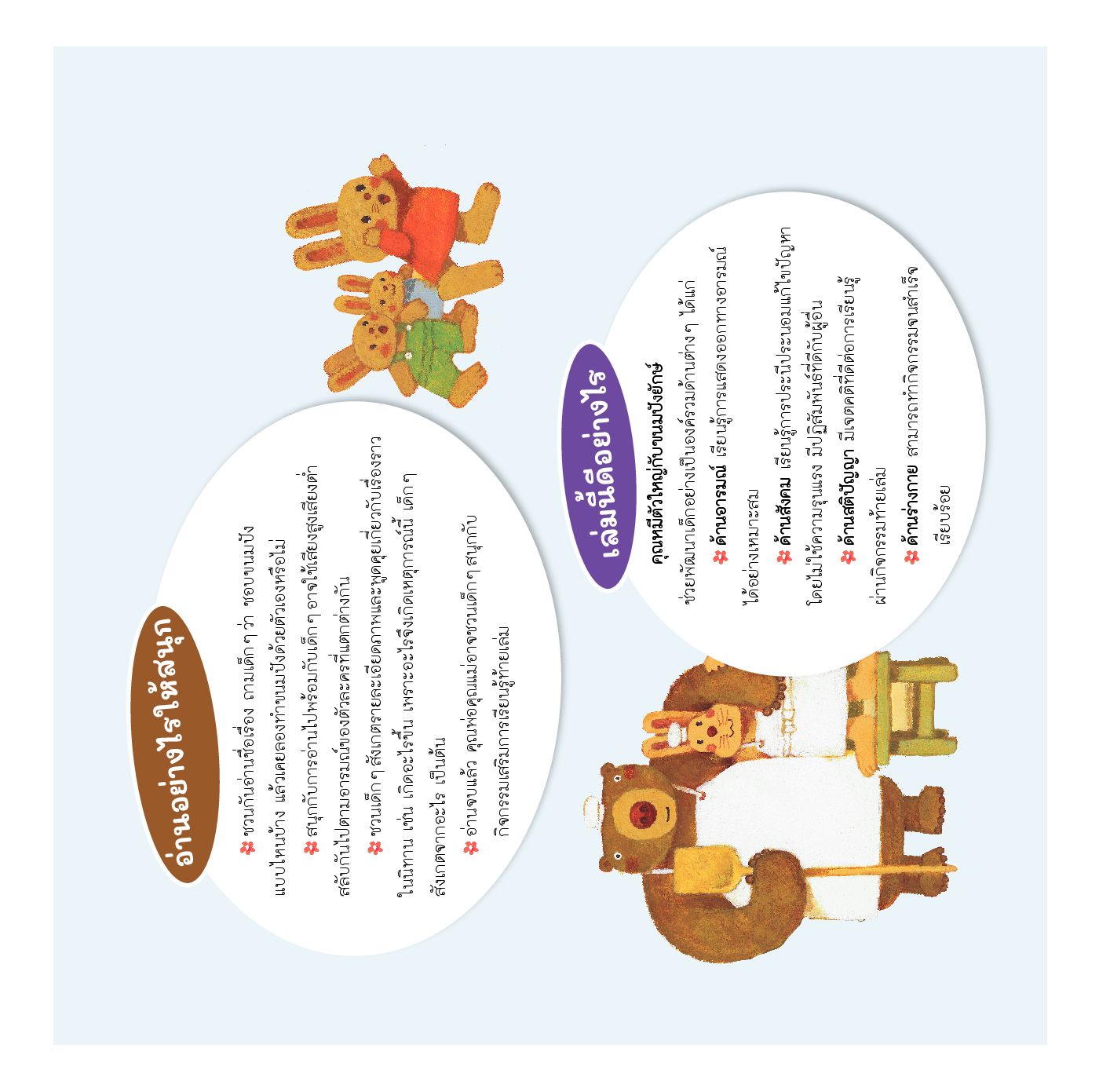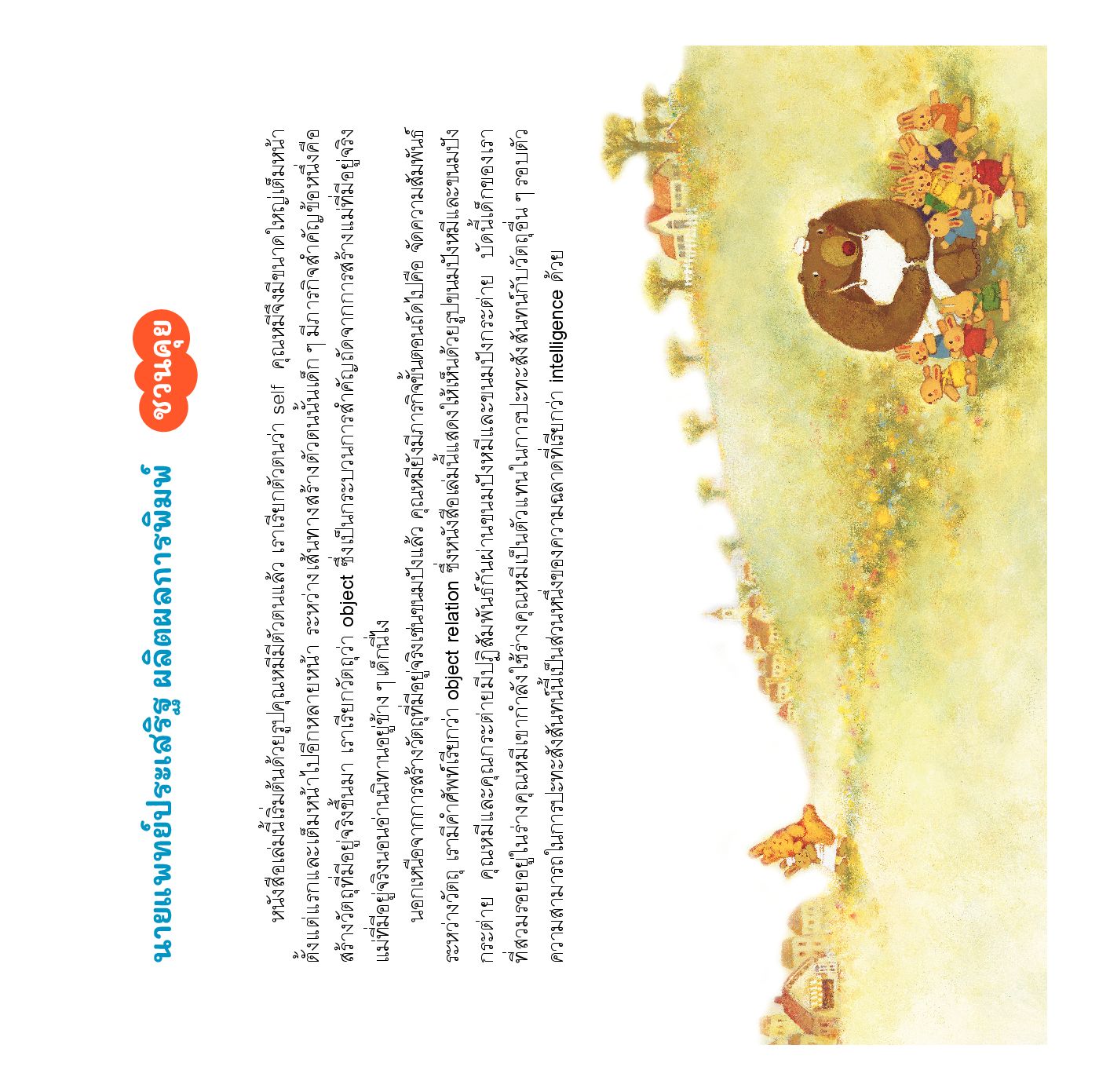 คุณหมีเดินทางไกลจนเริ่มค่ำ เขาตัดสินใจนอนพักในบ้านหลังหนึ่ง วันต่อมากระต่ายเจ้าของบ้านก็เปิดประตูมาพบกับคุณหมีตัวใหญ่ที่เนื้อตัวเลอะแป้งเต็มไป เพราะนอนทับถุงแป้งสำหรับทำขนมปังนั่นเอง คุณหมีกล่าวขอโทษและช่วยทำขนมปังเพื่อเป็นการไถ่โทษ กระต่ายเจ้าของร้านสอนวิธีทำขนมปังแล้วให้คุณหมีทำคนเดียว ระหว่างที่นั่งรอขนมปังอบอย่างตั้งใจ ทันใดนั้นขนมปังขนาดยักษ์ก็เด้งออกมาจากเตาอบ เหล่ากระต่ายน้อยที่แอบมองอยู่รีบเข้ามาช่วยคุณหมีทำขนมปังรูปต่าง ๆ มากมาย เมื่อเจ้าของร้านกลับมาเจอขนมปังรูปแปลกประหลาดเต็มไปหมดจึงโกรธมาก คุณหมีและกระต่ายน้อยจึงออกมานอกร้านอย่างรู้สึกผิด จู่ ๆ กระต่ายเจ้าของร้านก็เรียกพวกเขาอย่างอารมณ์ดีเพราะเจอขนมปังรูปตัวเองด้วย เขาจึงให้ช่วยกันนำขนมปังรูปต่าง ๆ มาประดับตกแต่งร้านและนำขนมปังคุณหมียักษ์ไปมอบให้แก่โรงเรียนอนุบาลกระต่าย คำนิยมโดยนายแพทย์ประเสริฐ ผลิตผลการพิมพ์บัดนี้เด็กของเราที่สวมรอยอยู่ในร่างคุณหมี เขากำลังใช้ร่างคุณหมีเป็นตัวแทนในการปะทะสังสันทน์กับวัตถุอื่น ๆ รอบตัว ความสามารถในการปะทะสังสันทน์ นี้เป็นส่วนหนึ่งของความฉลาดที่เรียกว่า intelligence ด้วย